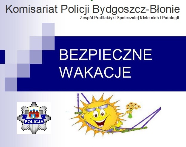 Pani Beata Kujawa-Tobolska kontynuując współpracę z komisariatem policji na Błoniu przypomina o bezpieczeństwie podczas wakacji.