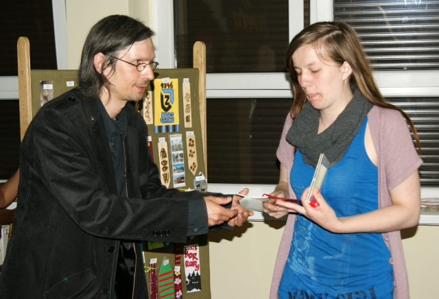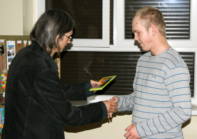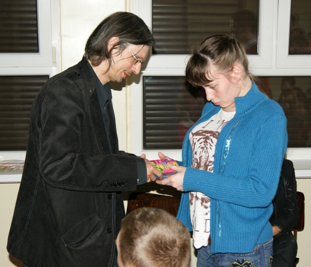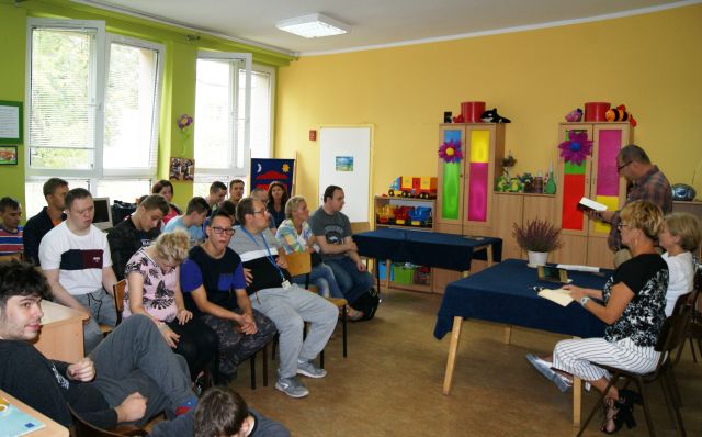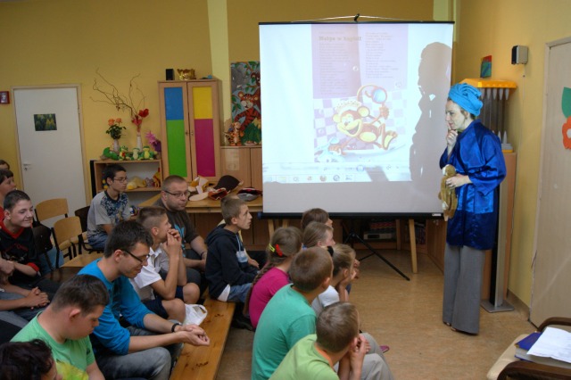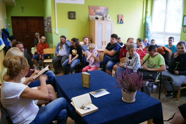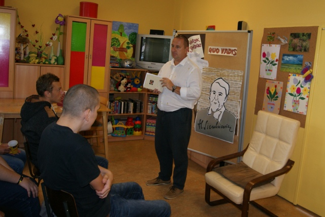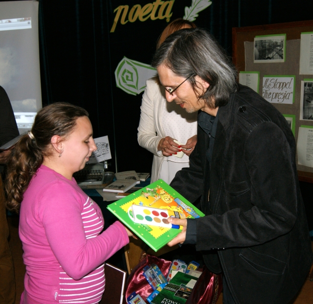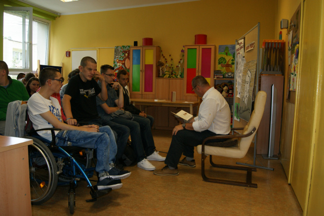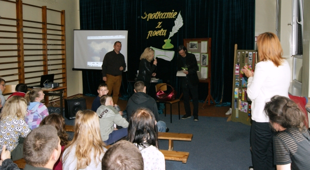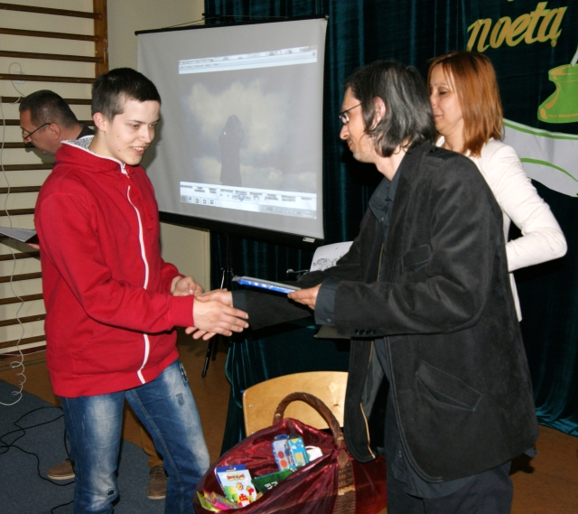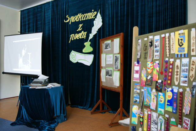 Dzisiejsze spotkanie z literaturą było wyjątkowe. Gościł u nas bydgoski poeta pan Mariusz Stoppel, który poprzez swoje prezentacje multimedialne, w bardzo interesujący sposób zachęcił nas do szerszego sięgania po poezję. W tym samym czasie pani Elżbieta Kamińska-Zielińska, inspirowana poezją pana Mariusza, rysowała do jednego z jego wierszy. Pani Ela pracuje w naszym ośrodku, a prywatnie jest córką pisarza Jerzego Sulimy-Kamińskiego, którego najsłynniejsza książka "Most Królowej Jadwigi" została ozdobiona jej grafikami. Na zakończenie uhonorowano uczestników konkursu plastycznego na zakładkę do książki.