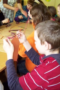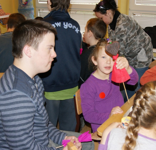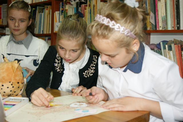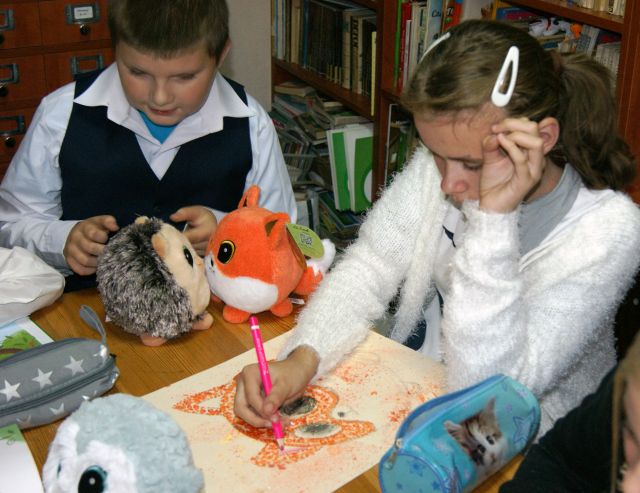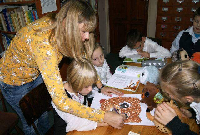 Książka Anny Świrszczyńskiej "O wesołej Ludwiczce" stała się kanwą zajęć czytelniczych dla uczniów klas młodszych. Na początku uczniowie wysłuchali bajki czytanej przez pana bibliotekarze, a jednocześnie mogli śledzić ilustracje wyświetlane na ekranie. W dalszej części zajęć panie Anetta i Ela, ze świetlicy szkolnej, poprowadziły zajęcia, w trakcie których omówiły z uczniami cech dobrego kolegi. W dalszej części dzieci brały udział w zajęciach integracyjnych i ruchowych. Zajęcia zakończyło wspólne wykonanie kukiełek - króla z piernika.