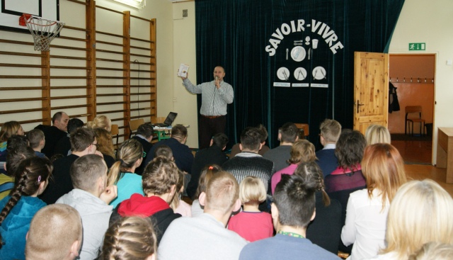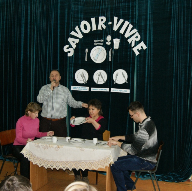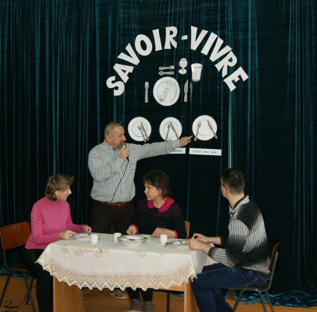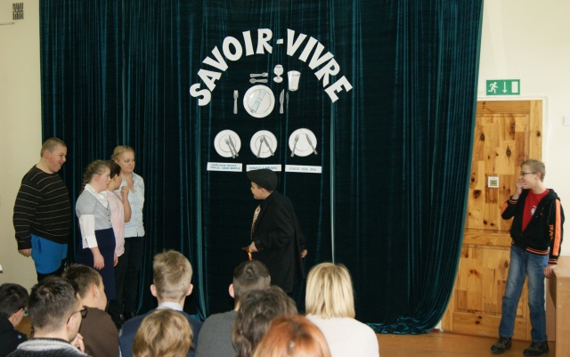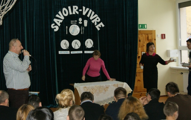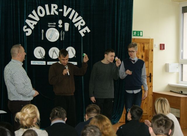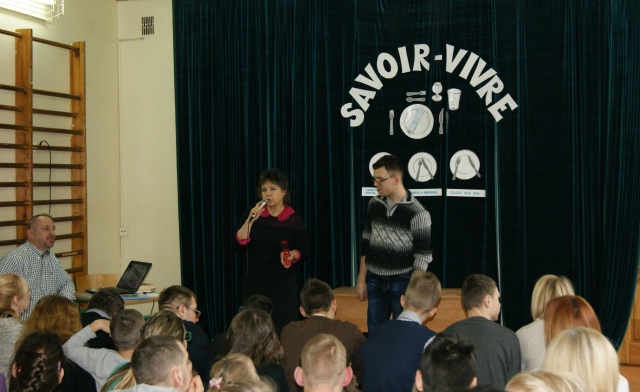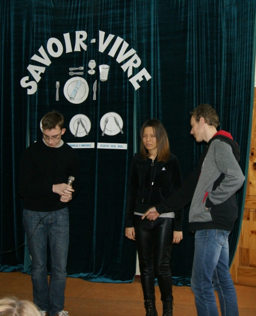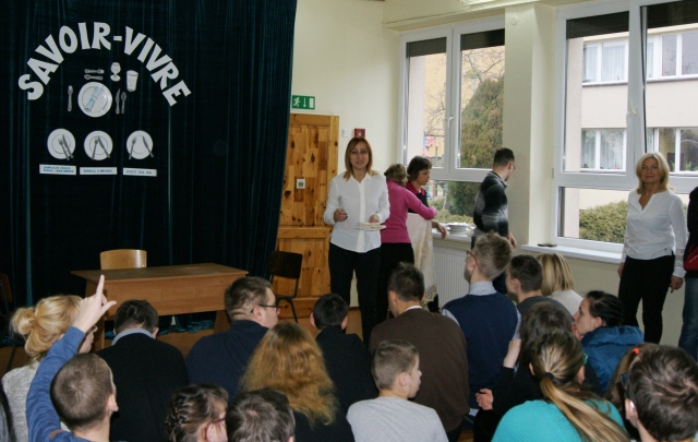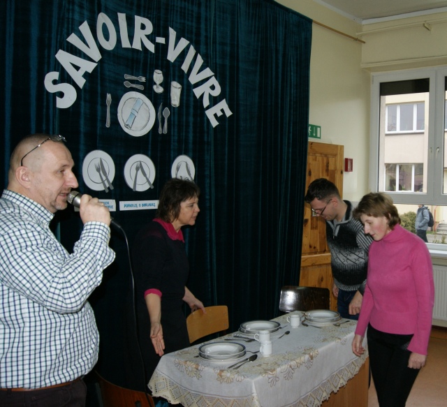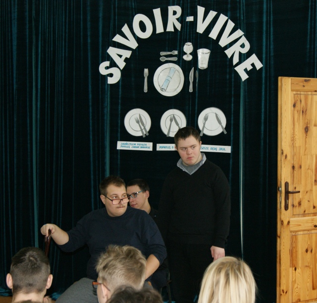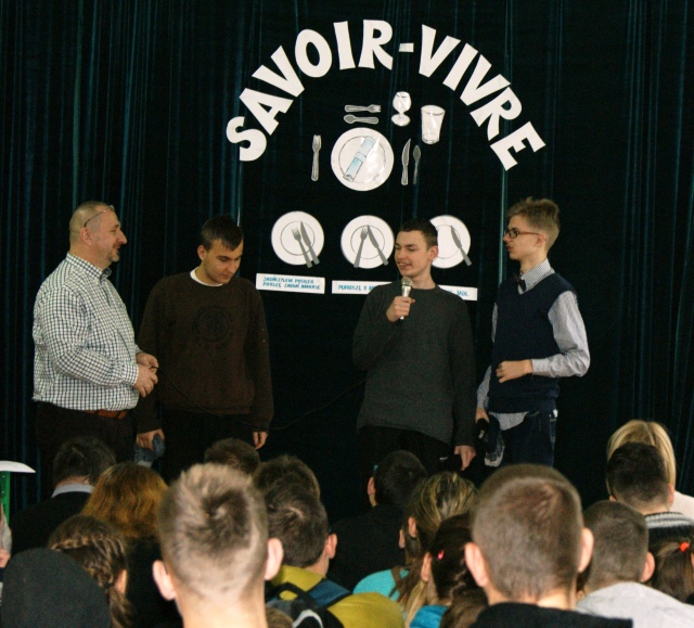 Dzisiejsze spotkanie poświęciliśmy sprawom dobrego wychowania. Uczniowie klas: 6b pani Anetty Szews; 1bg pani Anetty Jagłowskiej; 6c pani Iwony Pawłowskiej; 2bp pani Agnieszki Przekwasińskiej oraz 3cp pani Iwonu Ksieniewicz w bardzo sugestywny sposób przedstawili scenki pokazujące, jak należy zachować się w rożnych sytuacjach życiowych. Do naszego słownika dodaliśmy zwrot "savoir vivre", chociaż wielu z nas doskonale wie, co to dobre maniery. Uczniów pragnących pogłębić sprawy dobrego wychowania zachęcamy do odwiedzenia biblioteki i zapoznania się z książkami poświęconymi tym zagadnieniom.