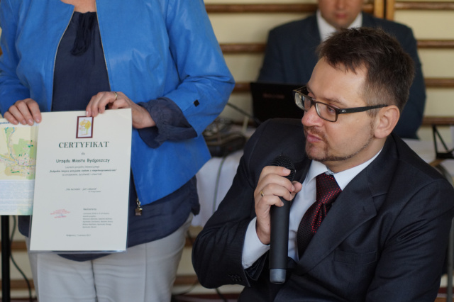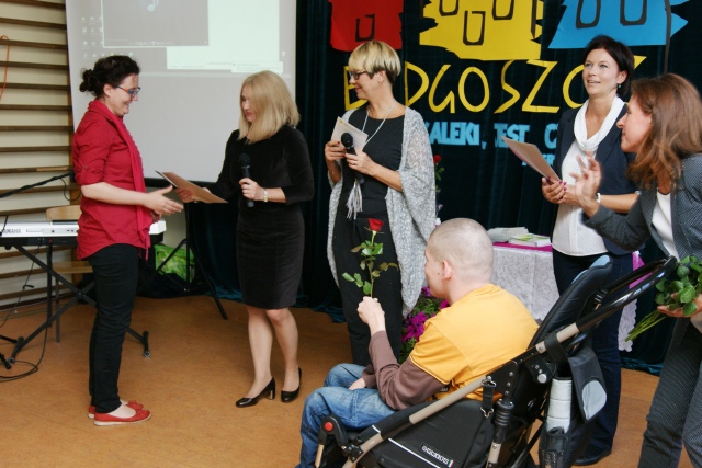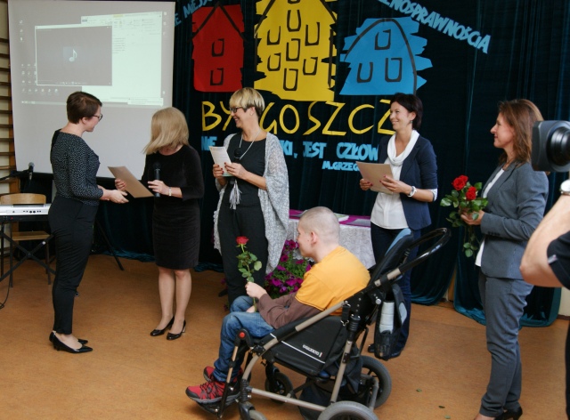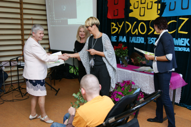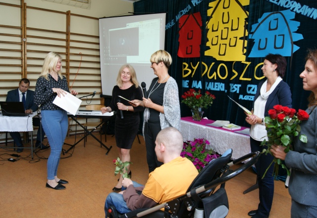 Przybyli na nią laureaci( 29 osób z 23 placówek) zapoznawszy się z charakterem naszej placówki oraz teoretycznymi założeniami innowacji pedagogicznej, uhonorowani zostali certyfikatami 'Bydgoskich miejsc przyjaznych osobom z niepełnosprawnościami", za prezentowanie w swej codziennej pracy otwartości, życzliwości oraz zrozumienia. Wręczone zostały również foldery informacyjne promujące nagrodzone placówki.