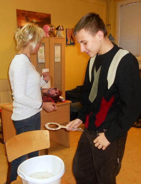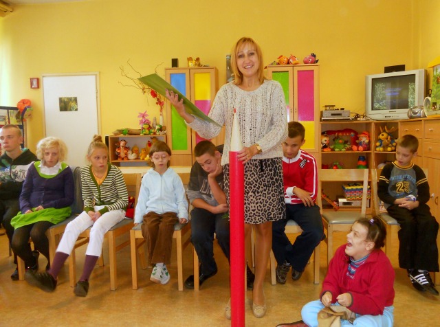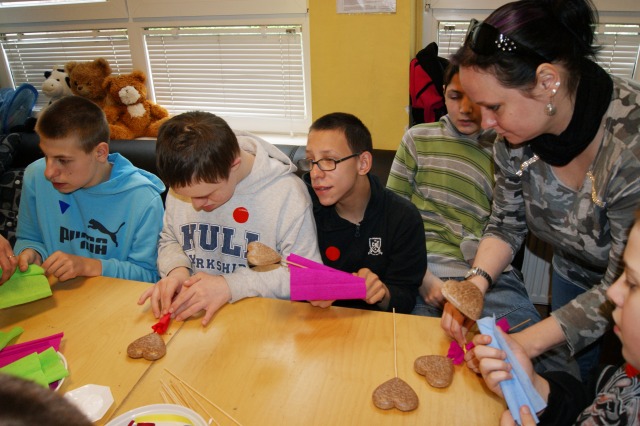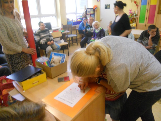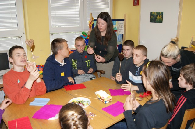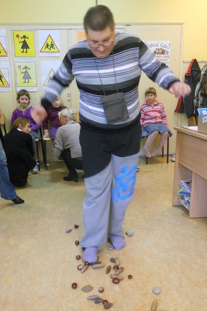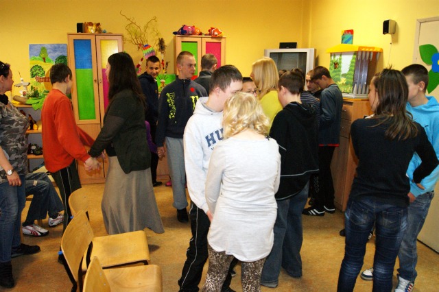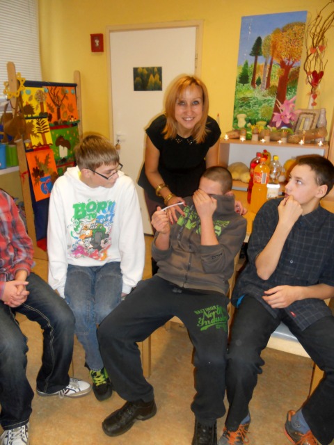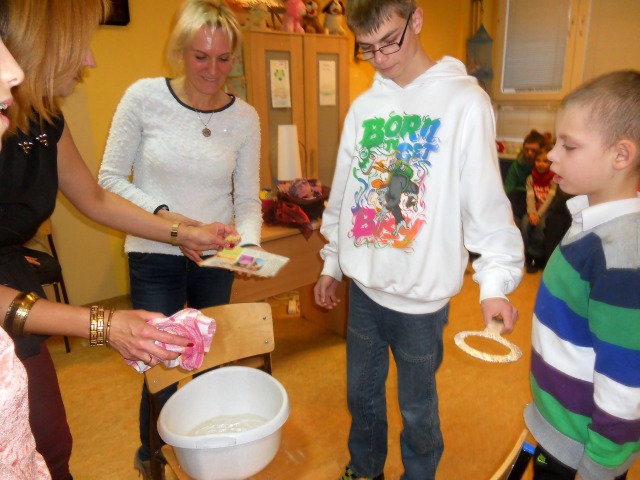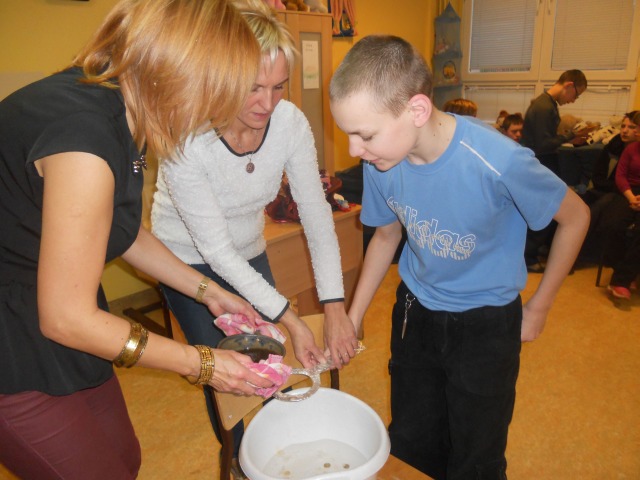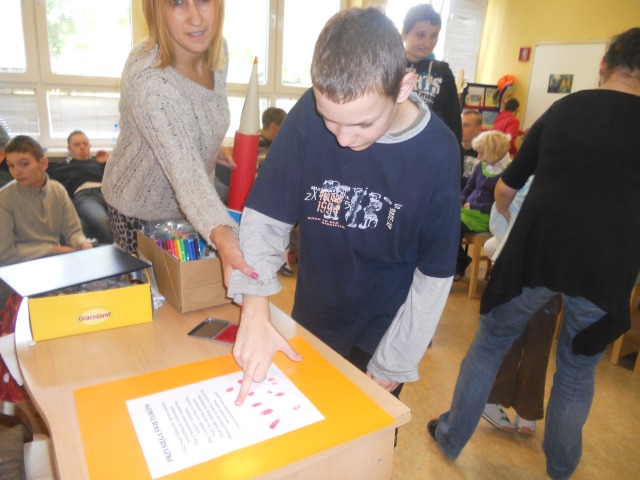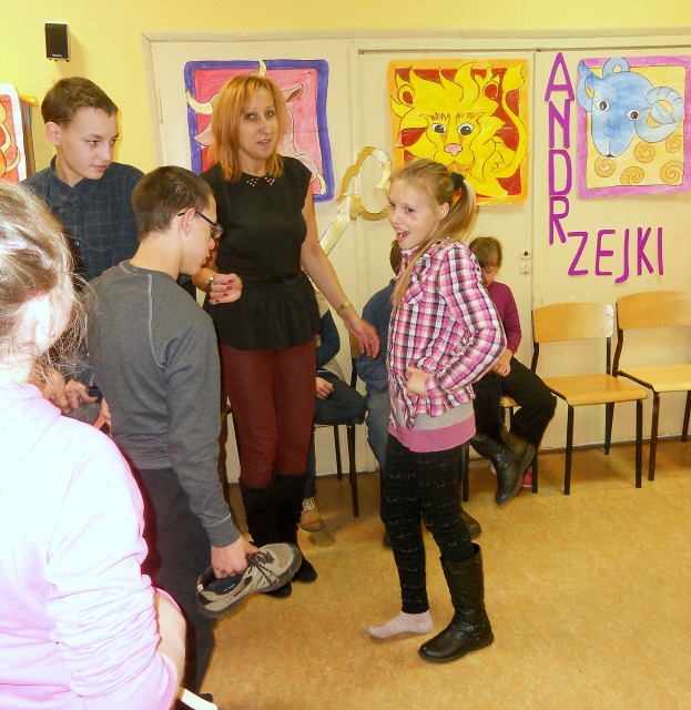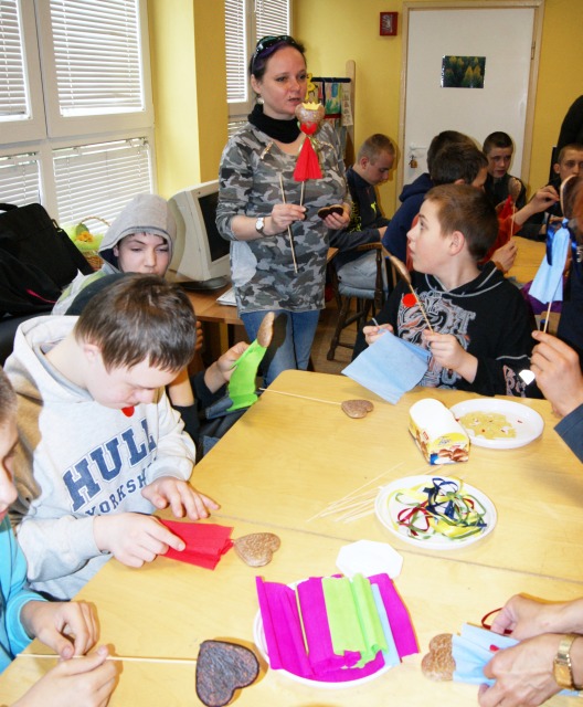 Książka Anny Świrszczyńskiej "O wesołej Ludwiczce" stała się kanwą zajęć czytelniczych dla uczniów klas młodszych. Na początku uczniowie wysłuchali bajki czytanej przez pana bibliotekarze, a jednocześnie mogli śledzić ilustracje wyświetlane na ekranie. W dalszej części zajęć panie Anetta i Ela, ze świetlicy szkolnej, poprowadziły zajęcia, w trakcie których omówiły z uczniami cech dobrego kolegi. W dalszej części dzieci brały udział w zajęciach integracyjnych i ruchowych. Zajęcia zakończyło wspólne wykonanie kukiełek - króla z piernika.