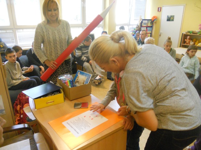 25 września odbyło się pasowanie nowych uczniów korzystających ze świetlicy szkolnej. Nowi uczniowie pozytywnie przeszli testy sprawności i umiejętności dotykowej, słuchowej czy ruchowej. Sprawdzono również czy dobrze znają regulamin świetlicy. Do wspólnej zabawy zaproszono także długoletnich bywalców świetlicy. Następnie dzieci złożyły uroczyste ślubowanie, a panie Anetta i Ela dokonały aktu pasowania przy pomocy ogromnej czerwonej kredki. Imprezę dopełniło obdarowanie dzieci przyborami szkolnymi.