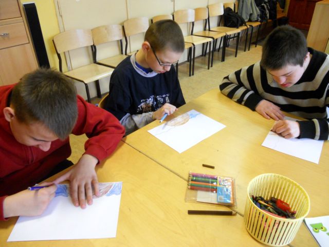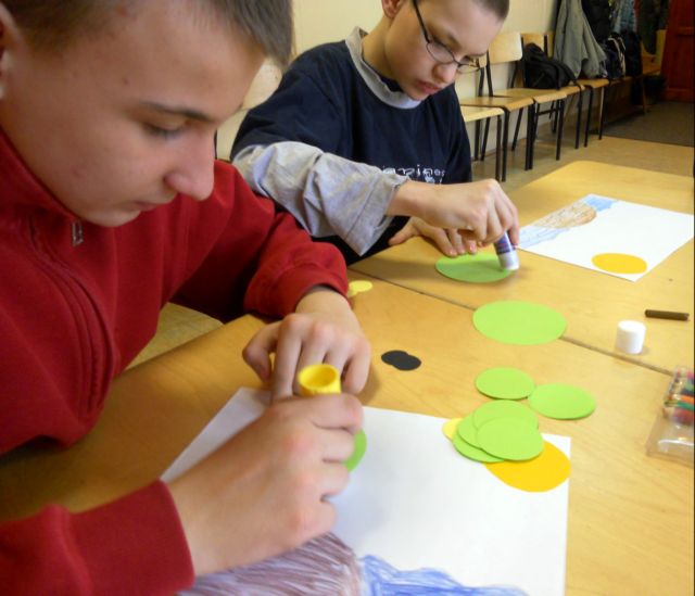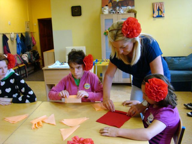 Zajęcia manualne w świetlicy – przygotowanie elementów dekoracji na 40-lecie Ośrodka.