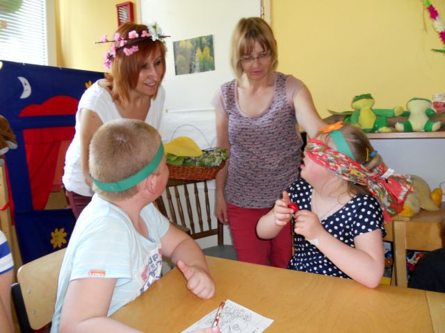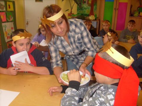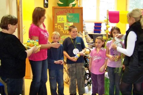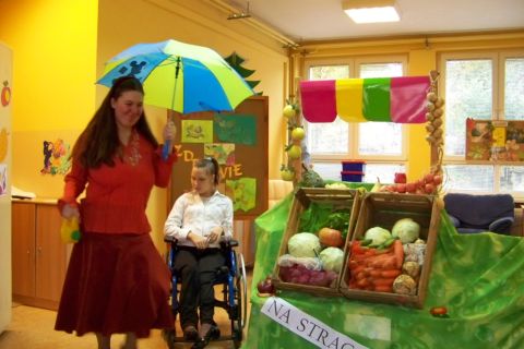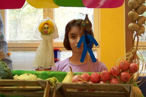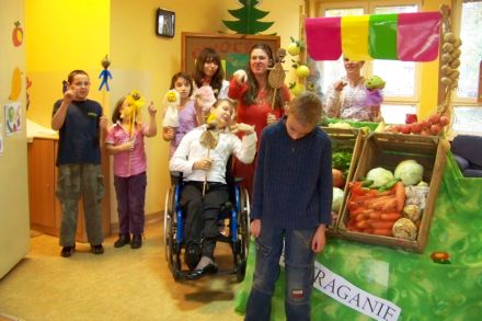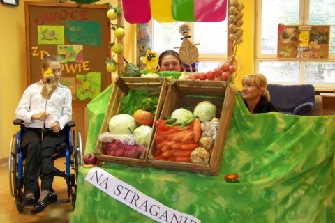 Wychowankowie z dużym zaangażowaniem ćwiczyli swoje role, a także własnoręcznie wykonali wspaniałe kukiełki wykorzystując naturalne warzywa i kolorowe materiały. W postać ,,chudego Jasia" wcielił się nasz niezastąpiony Piotruś, a bystrego właściciela straganu odegrał Karol. Dziewczynkom: Karolinie, Patrycji, Izie i Agnieszkom przypadły role warzywek. Uczniowie dzielnie pokonali tremę i byli bardzo szczęśliwi z udanego przedstawienia. Rodzice mieli wspaniałą okazję do dumy ze swoich pociech.