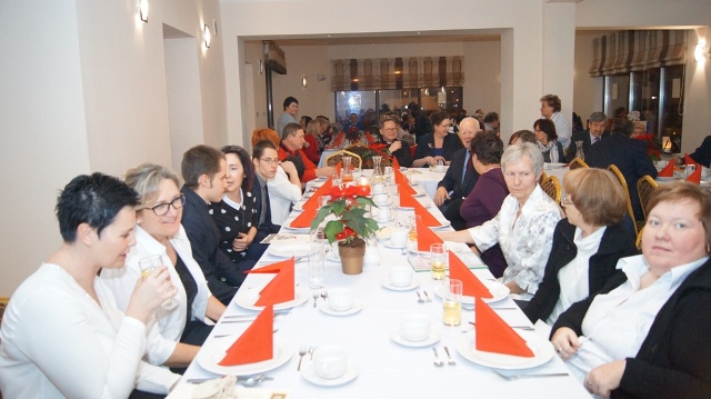 Do wspólnego stołu zasiedli obok osób z różnymi niepełnosprawnościami, ich rodziny i przyjaciele a także przedstawiciele władz miasta oraz życzliwi sponsorzy, wspierający stowarzyszenie w realizacji różnych zadań statutowych.