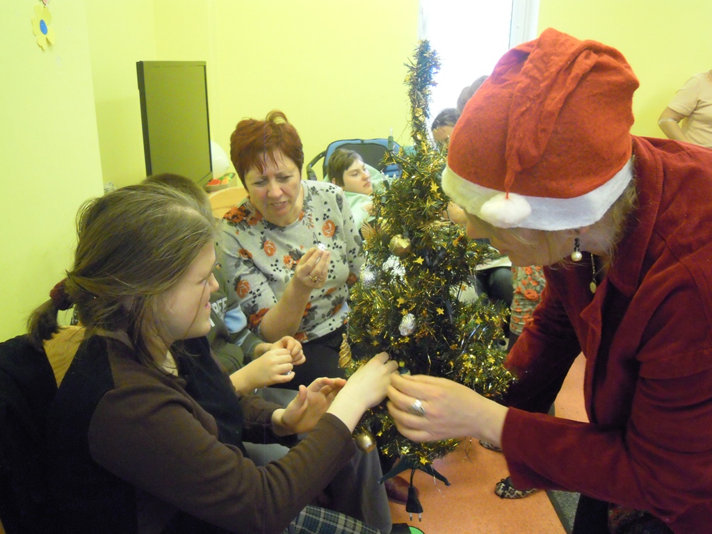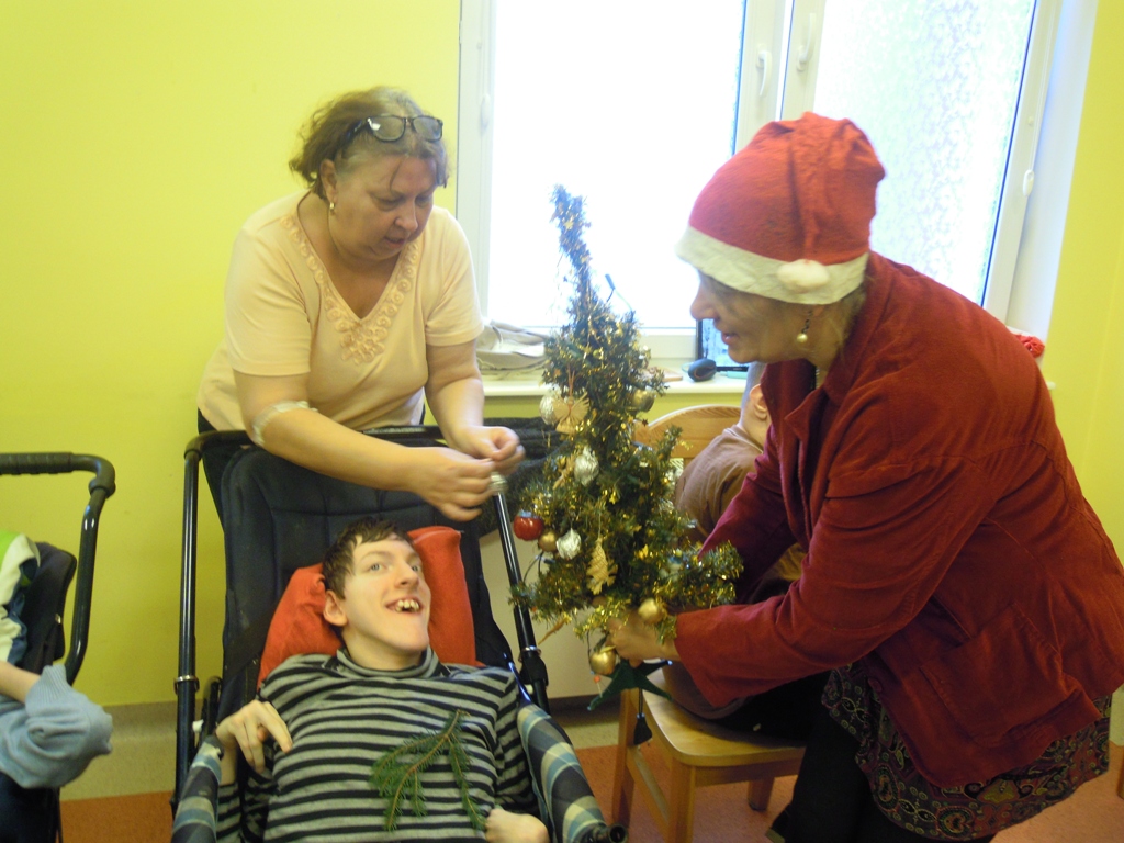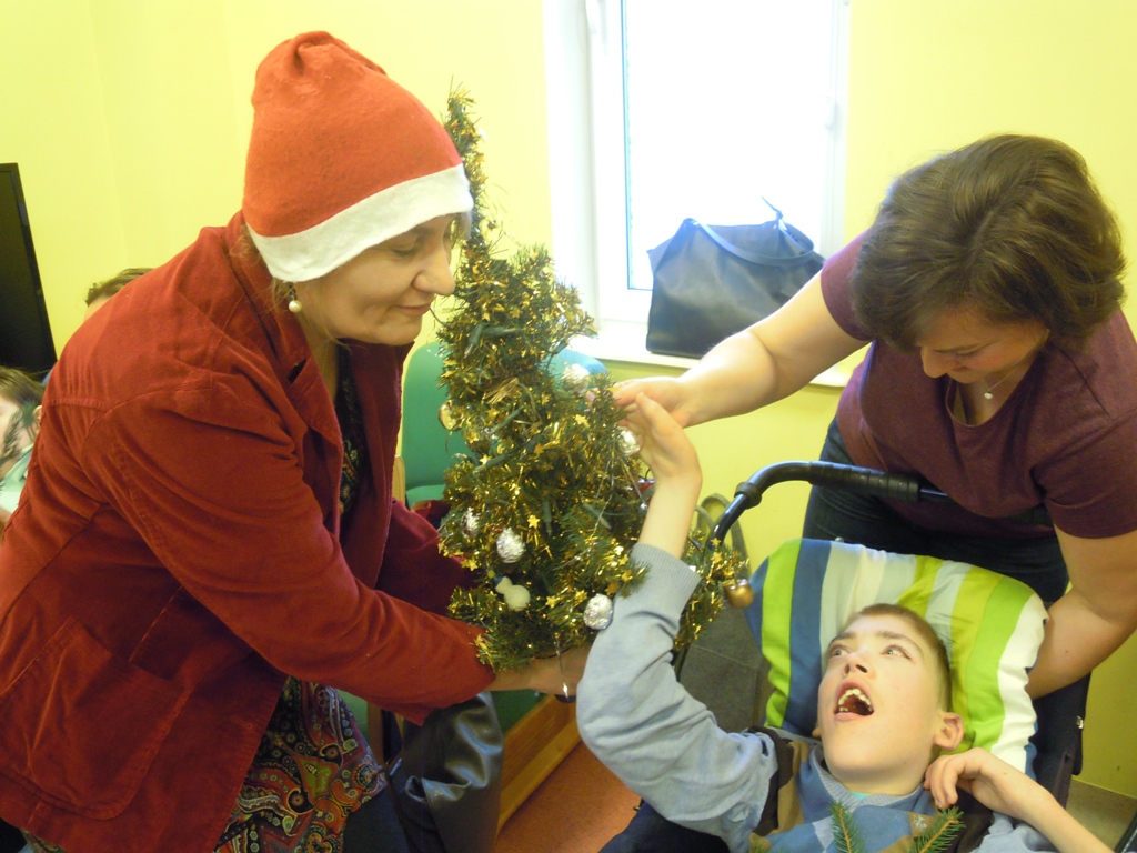 z choinkami, prezentami,