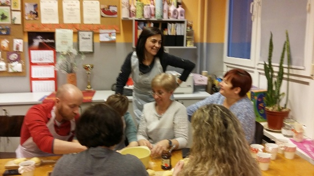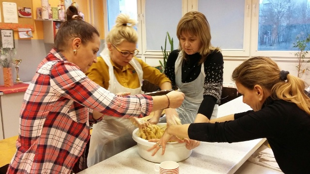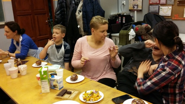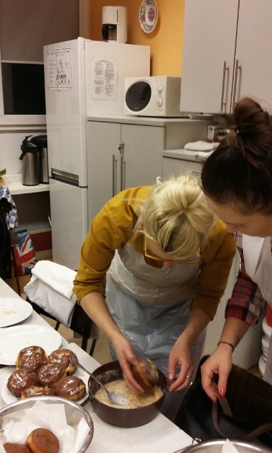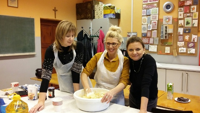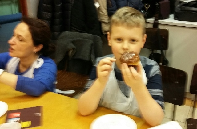 Zbliża się „Tłusty czwartek”, z tej okazji w środę 31.01.2018 r. odbyły się kolejne warsztaty kółka kulinarnego „Smaczek”. Po raz drugi w naszej szkole gościliśmy zaprzyjaźnione panie z piekarni Carrefour w Galerii Pomorskiej. Tym razem Pani Asia i Pani Anita wtajemniczyły nas w proces pieczenia pysznych pachnących pączków. Okazało się, że trzeba mieć bardzo silne ręce, aby wyrobić ciasto oraz dużo cierpliwości, aby czekać na jego wyrośnięcie. Kiedy ciasto pięknie wyrosło uczniowie wraz z rodzicami i nauczycielami zabrali się do formowania pączków, a pani Asia rozpoczęła proces smażenia. Zapach jaki roznosił się po całej szkole był niesamowity. Po kilku minutach można było smakować pierwsze lukrowane pączki. Każdy z uczestników otrzymał przepis na wykonanie pączków oraz mały poczęstunek do domu, aby mógł pokazać swoją pracę mamie, tacie czy rodzeństwu.