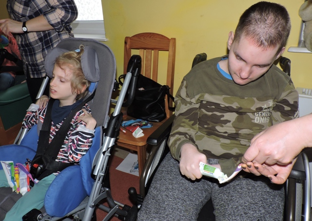Później pastę do zębów wycisnęliśmy i zęby pięknie szczoteczką myliśmy.