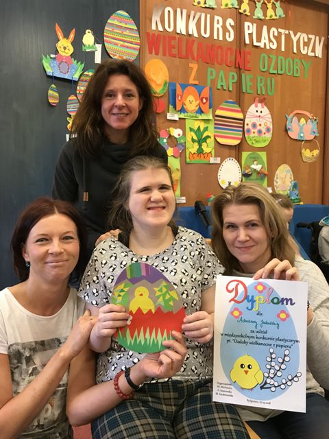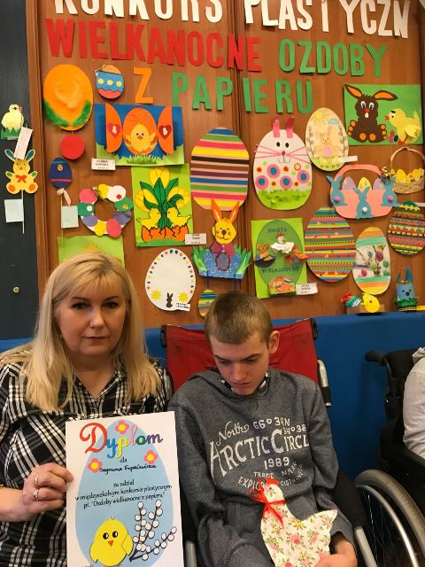 W dniu 27 marca 2018 r. w Ośrodku Wsparcia uczniowie ZS nr 31, ZS nr 30, SOSW nr 3 spotkali się z okazji rozstrzygnięcia konkursu plastycznego pt. "OZDOBY WIELKANOCNE Z PAPIERU". Jury miało nie lada problem z wyłonieniem zwycięzców, bowiem wszystkie prace były piękne. Po burzliwych naradach wyłoniono zwycięzców:
