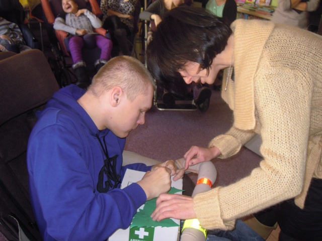 To były udane wakacje! – tak zgodnie stwierdzili uczniowie nauczania indywidualnego, którzy 28 października b.r. przybyli do Filii dla dzieci Wojewódzkiej i Miejskiej Biblioteki Publicznej w Bydgoszczy, by wspomnieć minione wakacje i zaprezentować Apteczki I Pomocy, które tworzone były w ramach udziału w kole zainteresowań „Spotkania z literaturą”. Wszystkich niezmiernie ucieszył fakt, że wyposażenie Apteczek, tak pieczołowicie przygotowywanych przez cały zeszły rok szkolny, nie przydało się podczas letniego wypoczynku. Z uwagi na to uczniowie docenieni zostali dyplomami.