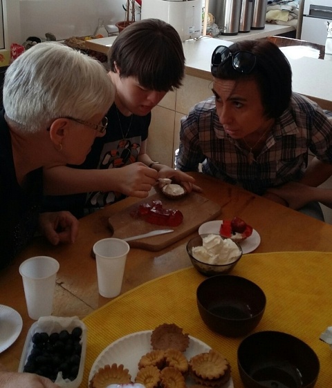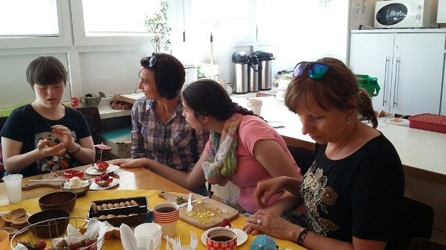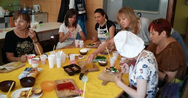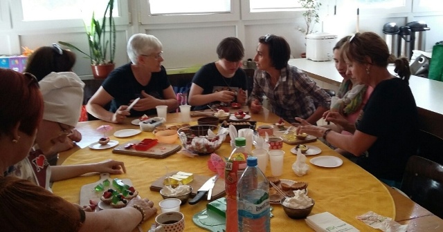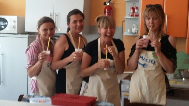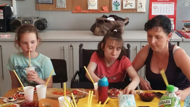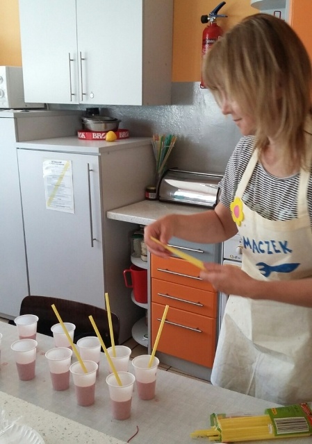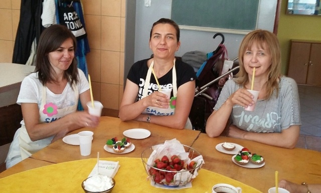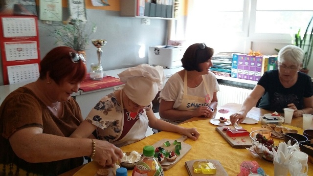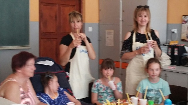 W czerwcu odbyło się kolejne spotkanie miłośników kółka kulinarnego „Smaczek” oraz koła „Smak” dla naszych niezapomnianych absolwentów. Na powitanie naszych uczniów, absolwentów, rodziców i towarzyszących nauczycieli został przygotowany mleczny koktajl truskawkowy. Po zadowolonych minach było widać, że wszystkim bardzo smakował. Tym razem nasi goście zajęli się przygotowywaniem pysznych deserów. Owocowe babeczki przystrojone kremem budyniowym, kolorową galaretką oraz sezonowymi owocami wyglądały bardzo apetycznie, można nawet powiedzieć „bajecznie”. Po wykonaniu zadania nadszedł czas na degustację oraz rozmowy i wspomnienia w miłym towarzystwie.