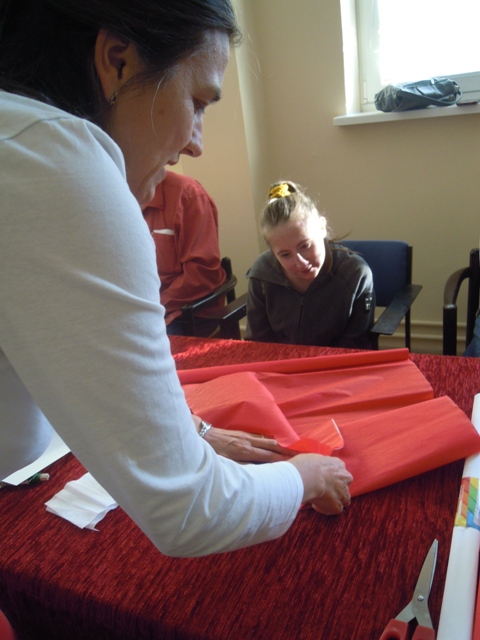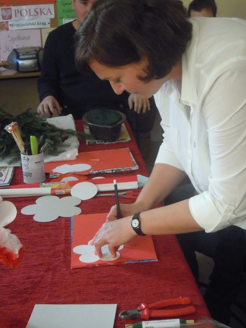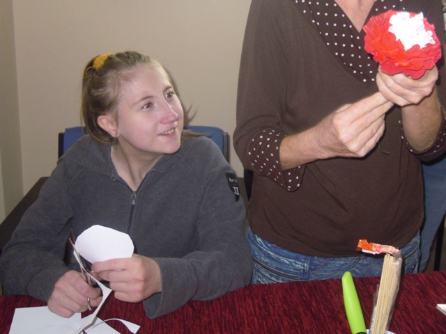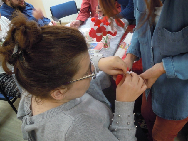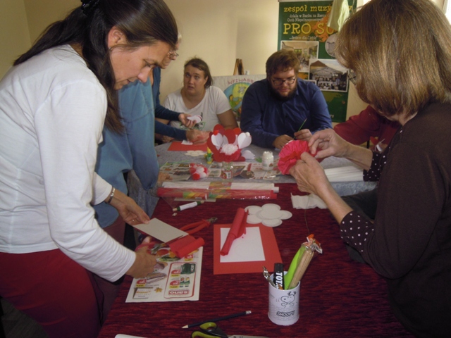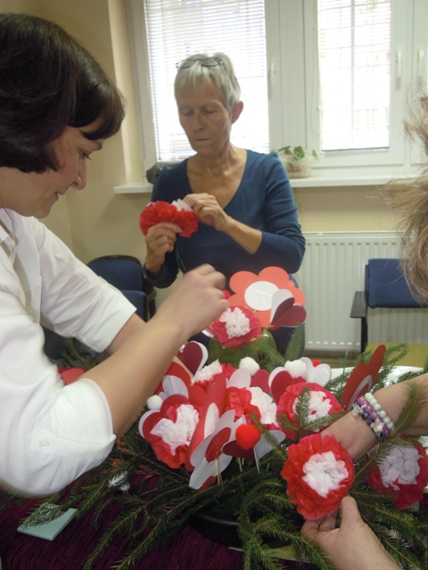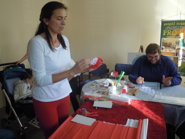 Podczas twórczych działań uczestnicy warsztatów mieli okazję wykonać biało-czerwone kwiaty. Zaangażowanie we wspólne działania zaowocowało powstaniem wiązanki, która złożona zostanie na grobie mieszkańców Starego Fordonu rozstrzelanych przez okupanta w 1939 roku.