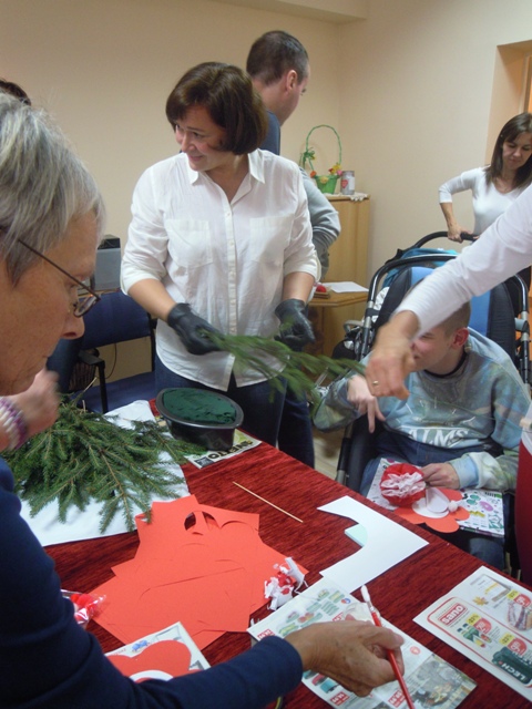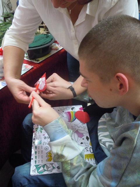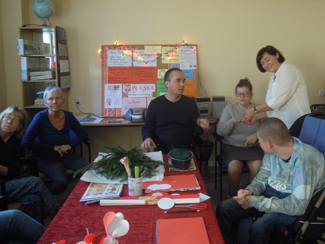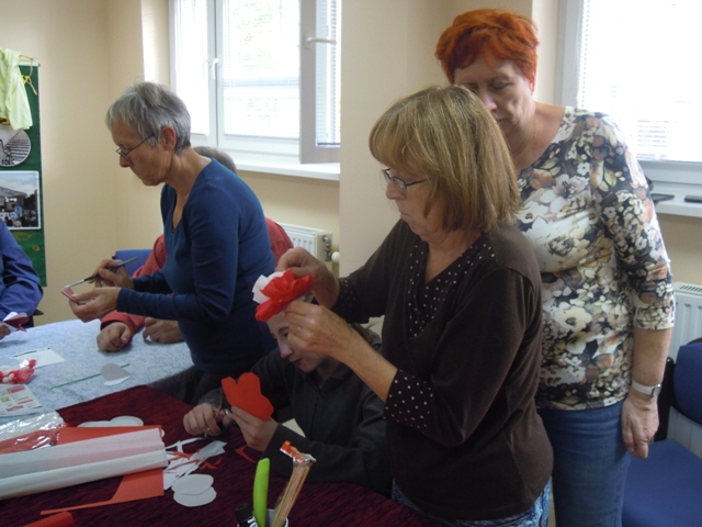 Z okazji 100. rocznicy odzyskania przez Polskę niepodległości uczniowie nauczania indywidualnego wraz z członkami Ruchu na Rzecz Godności Osób Niepełnosprawnych WYZWANIE wzięli udział w warsztatach plastycznych pt. „W barwach Niepodległej”, które odbyły się dnia 10 października 2018 r. w Klubie Przyjacielski Krąg.
