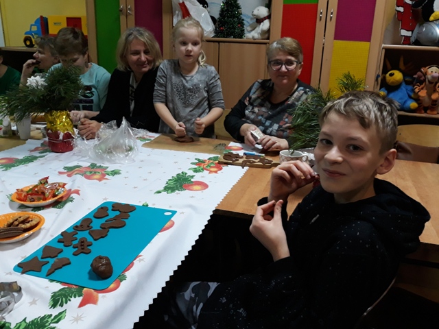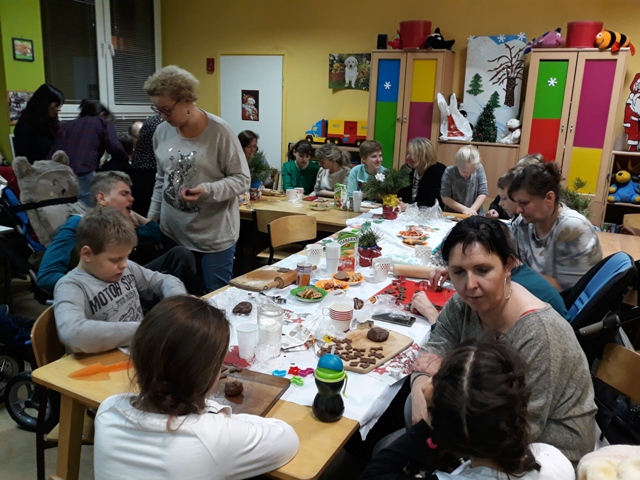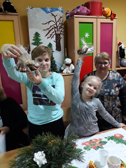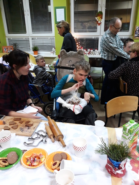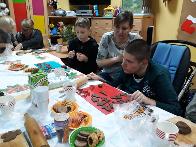 Natomiast wychowankowie, ich rodzice i rodzeństwo rozwinęli swoją inwencję twórcza podczas ich dekorowania. Było głośno, wesoło i serdecznie. O tym, że wypieki i tym razem były udane świadczy fakt, że każdy chciał je skosztować, a później wziąć przepis na ich samodzielny wypiek w domu. Radosna i świąteczna atmosfera podczas pieczenia udzieliła się nie tylko naszym wychowankom, ale i rodzicom oraz samym nauczycielkom. Utwierdziło to organizatorów świątecznych wypieków w przekonaniu, że należy podtrzymać tę sympatyczną tradycję.