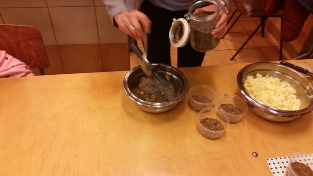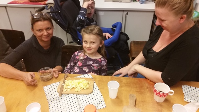 Pani Renia przyniosła wykonany przez siebie w domu “Jabłecznik na surowo”, który na początku spotkania poddano degustacji. Po ogólnej smakowej akceptacji deseru uczestnicy sami, ku ogólnemu zadowoleniu, uczyli się praktycznie jak go wykonać. Wyniki nauki przekroczyły spodziewane efekty nie tylko smakowe.Rodzice, dzieci i zaproszeni goście poznali nowe produkty takie jak: biała morwa, orzechy pekan, nasiona chia, daktyle, cynamon i inne, które połączone z jabłkami tworzą zdrowy i smaczny deser. Oprócz nauki wykonania “Jabłecznika na surowo” uczestnicy poznali korzyści zdrowotne z włączenia go do codziennej diety. Spotkanie to odbyło się w aromatycznej, miłej i serdecznej i atmosferze.