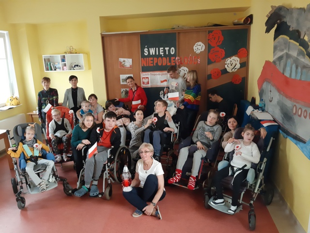 8 listopada 2019 r. uczniowie nauczani indywidualnie w Ośrodku Wsparcia uczestniczyli w spotkaniu "Czas na historię - Święto Niepodległości". Podczas spotkania utrwalili aktualny wizerunek Polski, poznali drogę narodu do odzyskania niepodległości oraz postać J. Piłsudskiego. Wykonali biało - czerwone kotyliony i flagi Polski. Wysłuchali pieśni patriotycznych i związanych z historią ojczyzny. Delegacja uczniów i nauczycieli zapaliła znicz przy pomniku 16 Pułku Ułanów Wielkopolskich na Błoniu.